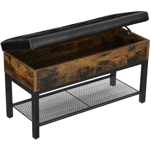 XL Naulakko-kenkäteline penkki teollinen muotoilu – Vintage ruskea/musta