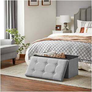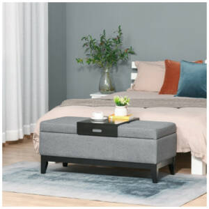 Sängynpenkki – Eteisen Penkki Säilytystilalla Tummanharmaa Pellavapinta, Puujalat 110 x 39 x 45 cm