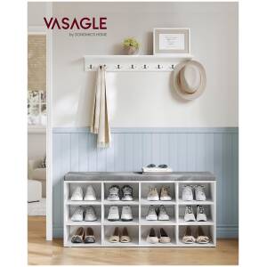 Kenkäteline – Penkki kenkäsäilytys avolokerolla 104 x 30 x 48 cm, valkoinen