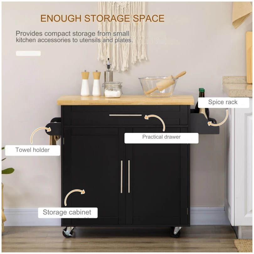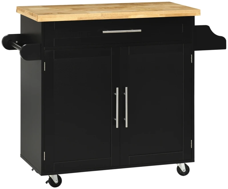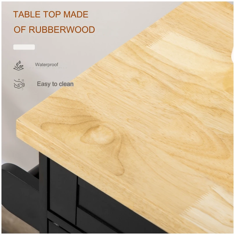 Keittiösaareke Pyörillä 109 x 40 x 89 cm Kestävä Työtaso Puu Musta