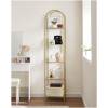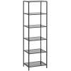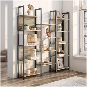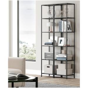 - 5 tasoa: Tämä 30,2 x 40 x 183,5 cm kokoinen hylly sisältää 5 leveää hyllylevyä. Tasoiden välinen etäisyys on 31,2 cm, tarjoten runsaasti tilaa koriste-esineille, kirjoille, valokuvakehyksille, maljakoille ja paljon muulle.