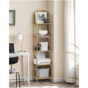 - Anna suosikkiesineidesi loistaa valokeilassa tällä käytännöllisellä ja muodikkaalla hyllyllä. Muuta kotisi näyttelytilaksi ainutlaatuisille kokoelmillesi. Investoi 5-tasoiseen kultaiseen kirjahyllyyn ja esitä aarteesi tavalla, joka kiinnittää kaikkien huomion. Tilaa nyt ja koe ero, jonka se tekee sisustuksessasi.