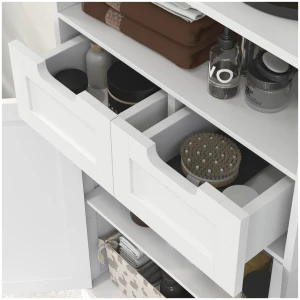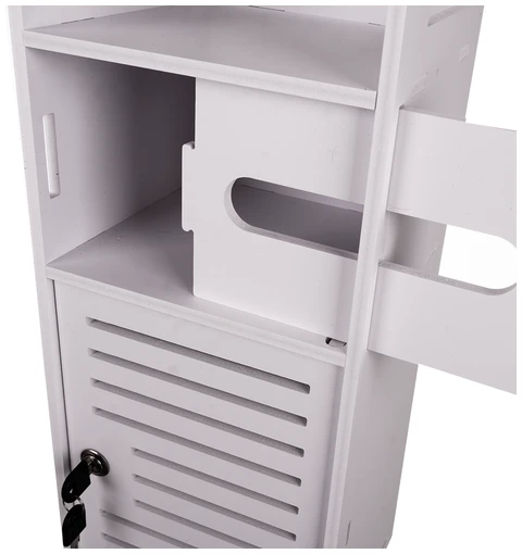 Tämä vapaasti seisova kylpyhuonekaappi klassisessa valkoisessa designissa yhdistää toiminnallisuuden ja tyylikkään estetiikan. Sisäänrakennetun WC-paperitelineen, lukittavan säilytystilan ja ilmastoitujen ovien ansiosta kaappi sopii täydellisesti sekä moderneihin että perinteisiin kylpyhuoneisiin.