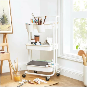 Pyörivä vaunu – keittiövaunu, kylpyhuonevaunu, valkoinen 40 x 22 x 86 cm
