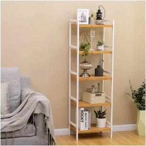 Bambu säilytyshylly 5 säädettävällä hyllyllä 60x26x130 cm – Valkoinen