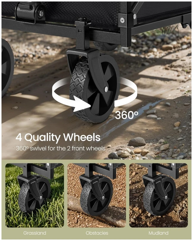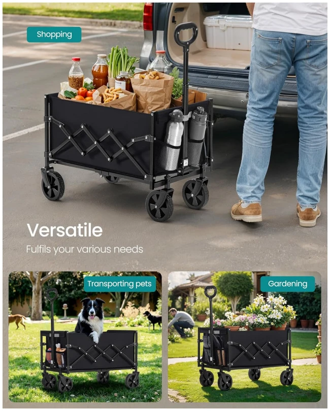 Taitettava puutarhavaunu – 150 kg kapasiteetti, musta