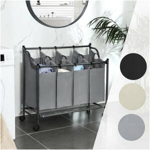 Pyykkikärry, jossa 2 koria, pyörät ja hyllyt – 100 L kapasiteetti, harmaa, 87 x 33 x 80,5 cm