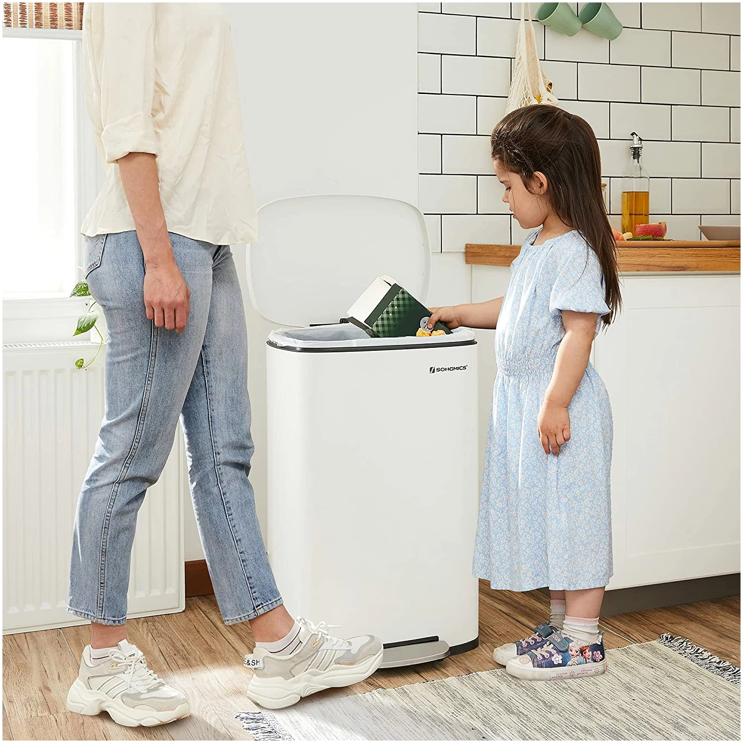 – Voit yksinkertaisesti astua polkimelle avataksesi kannen.